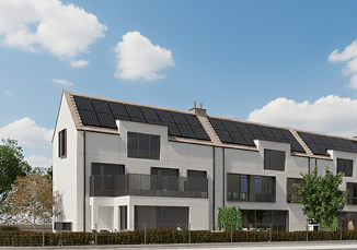Domy zaprojektowane w idealnym układzie względem stron świata. Słoneczne tarasy